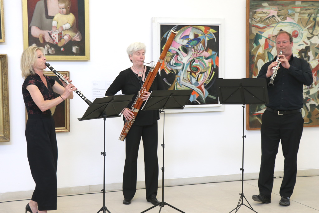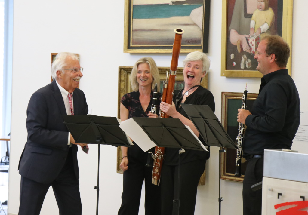 Besonders freute Haug der Besuch aus Solingens israelischer Partnerstadt Ness Ziona. Dr. Rafi Schnitzer war mit Frau Clara im Meistermannsaal. Die Gäste aus Israel gratulierten Franz Haug persönlich (nachträglich) zum Geburtstag. Für den musikalischen Rahmen der Veranstaltung sorgte das Trio d’anches, das verschiedene Stücke Mozarts vortrug.