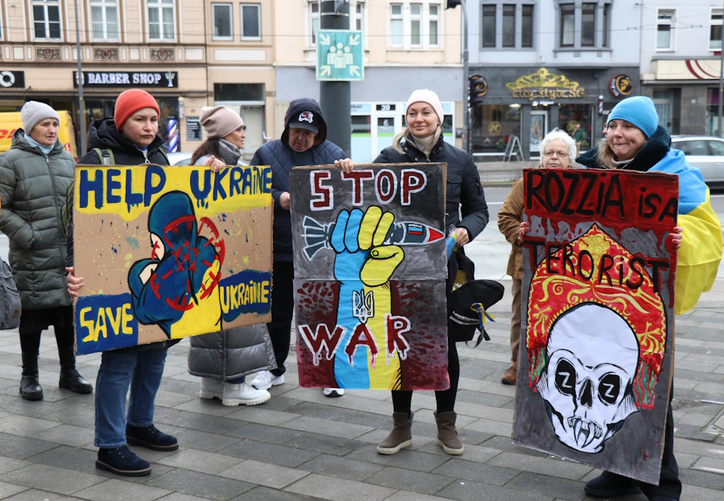 All das sorgte für eine Flüchtlingsbewegung gen Westen. Rund eine Million Ukrainer kamen nach Deutschland, etwa 2.000 haben in Solingen eine neue Heimat gefunden. Am Wochenende rückten sie angesichts des schwerwiegenden Datums bei verschiedenen Veranstaltungen enger zusammen. Am Freitag begann um 15 Uhr die Mahnwache vor dem Rathaus (wir berichteten hier). 24 Stunden später kam man erneut auf dem Walter-Scheel-Platz zusammen, um im Rahmen einer Kundgebung unter dem Motto „Nein zum Krieg in Europa“ Unterstützung für die Ukraine zu demonstrieren.