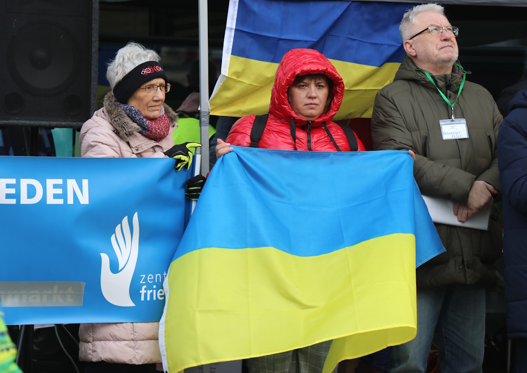 Vor dem Rathaus wehte die Flagge der Ukraine