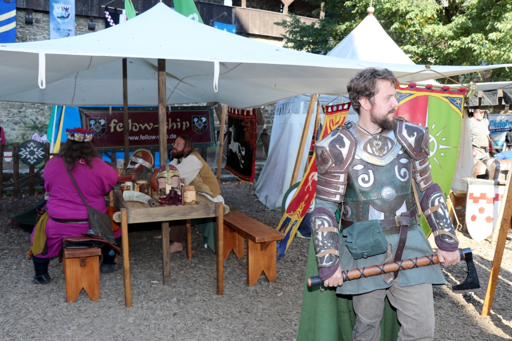 Wer auf Schloss Burg durch den Torbogen schlendert, betritt eine andere Welt. Kopfsteinpflaster und Türme, mittendrin Händler, die einem interessant aussehende Tränke anbieten oder die passende Blankwaffe zum Kostüm. Hier finden wahre Fans alles, was das Herz begehrt. Vor allem für Cosplayer ein wahres Paradies.